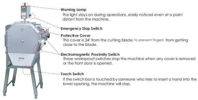 Safety is an indispensable factor in any food slicing machine. In order to ensure safe operation, SEVEN CHEFS Food Slicers incorporate various types of safety features.